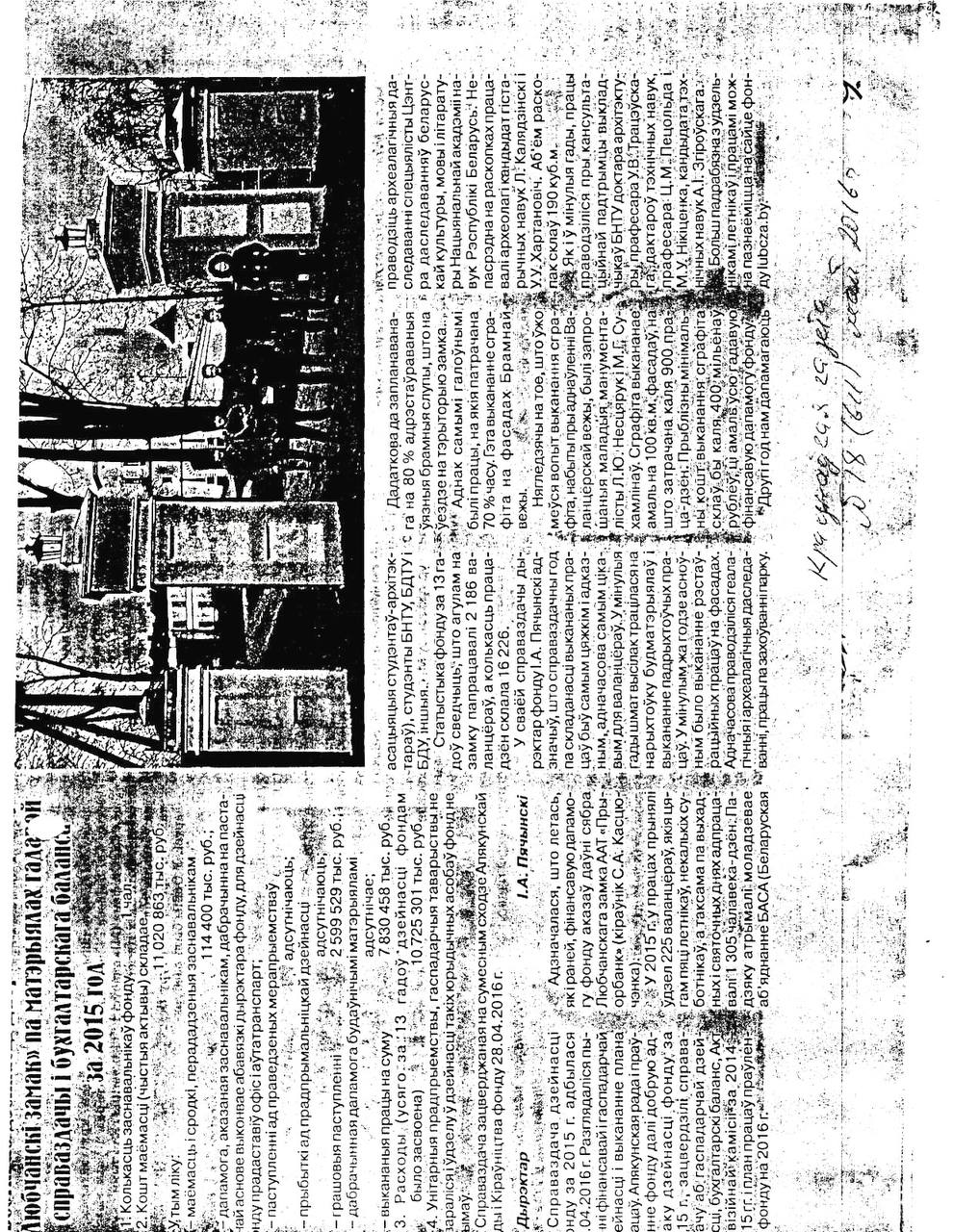 Справаздача аб дзейнасці Дабрачыннага фонду ‘Любчанскі замак’ за 2015 год.